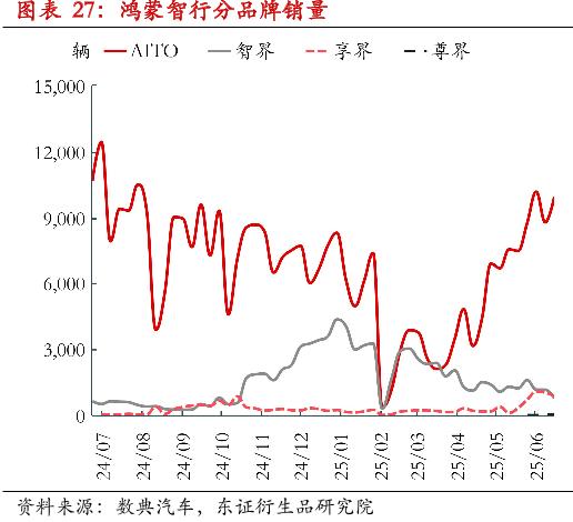 鸿蒙系7月交付量47752辆,环比下跌9%。张宇通过分析智界R7、问界M8的销量走势得出结论,“鸿蒙系内部车型也存在竞争”。