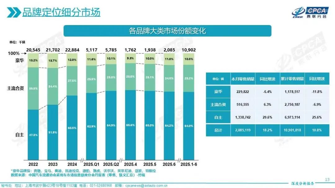 事实上,今年上半年,合资车企销量改善明显。乘联会数据显示,2024年,合资品牌单月零售份额一度跌破35%;直至去年11月、12月逐步回升至35%以上。今年上半年,合资品牌零售份额约36%,主流合资品牌零售275.1万辆,销量下滑幅度收窄至6.9%(去年同期降幅为13.4%)。6月,主流合资品牌零售51.7万辆,同比增长6.3%。