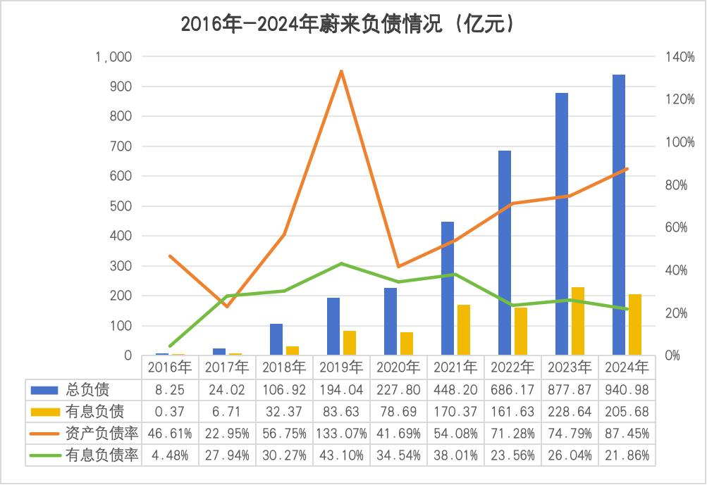 财报显示,蔚来的资产负债率从2020年的41.69%翻倍至2025年Q2的93.39%,突破行业偿债风险阈值。同时,有息负债几乎都保持在20%以上,给企业带来较大的还本付息压力。