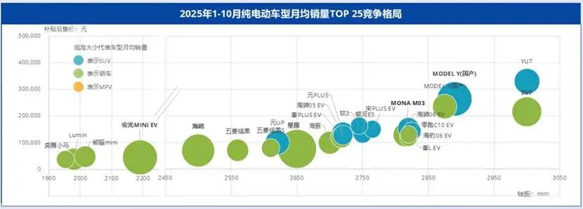 但其实3万美元(20万人民币左右)是目前绝大多数爆款车型的集中区,在此之上有相对爆款的车型(如MODEL 3/Y;S/YU 7),在此之下有大火的零跑。只不过A00级车今年以来大幅度放量,拉低了平均售价。