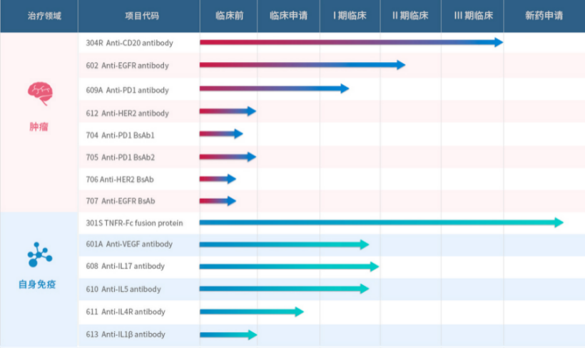三生国健研发管线 来源/三生国健官网