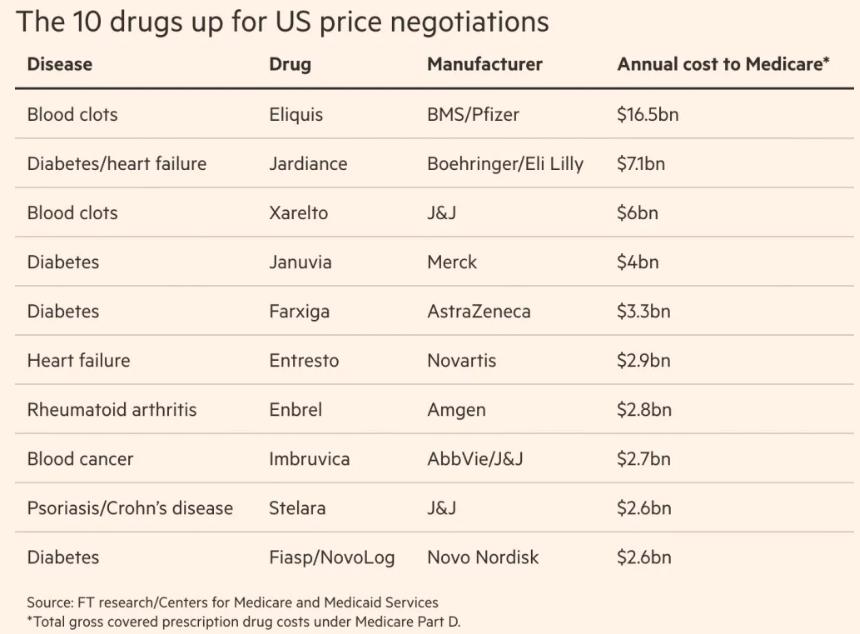 今年2月初,美国医保向药企开了集采“第一枪”:联邦医疗保险已向10家相关药品的制药商发出了初步报价。这十款处方药物均为全球营收26亿美元以上的“药王级”药物,如恩格列净、利伐沙班、乌司奴单抗、伊布替尼等。