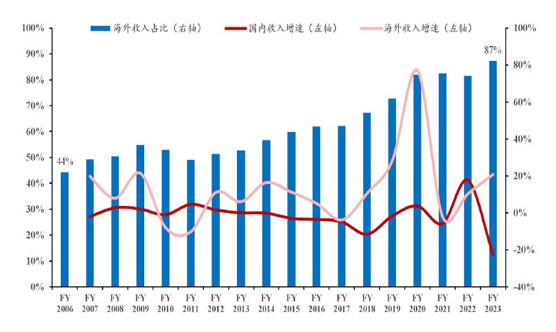 以武田制药为例,其就是通过拓展海外增量市场进而有效带动公司整体收入提升,抵御国内行业寒冬。2006年武田制药海外收入占比达44%,2023年达到了87%,几乎翻倍。