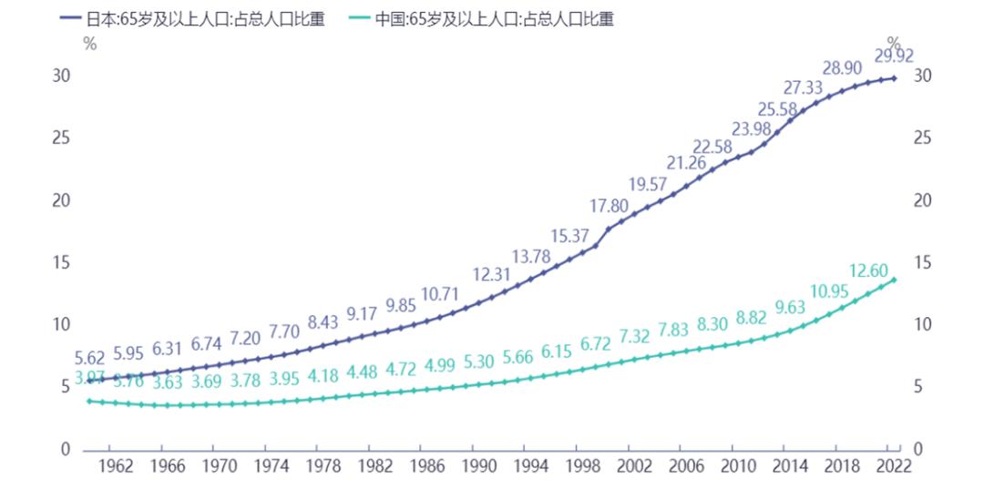 中日65岁及以上人口占总人口比重 来源:同花顺iFinD
