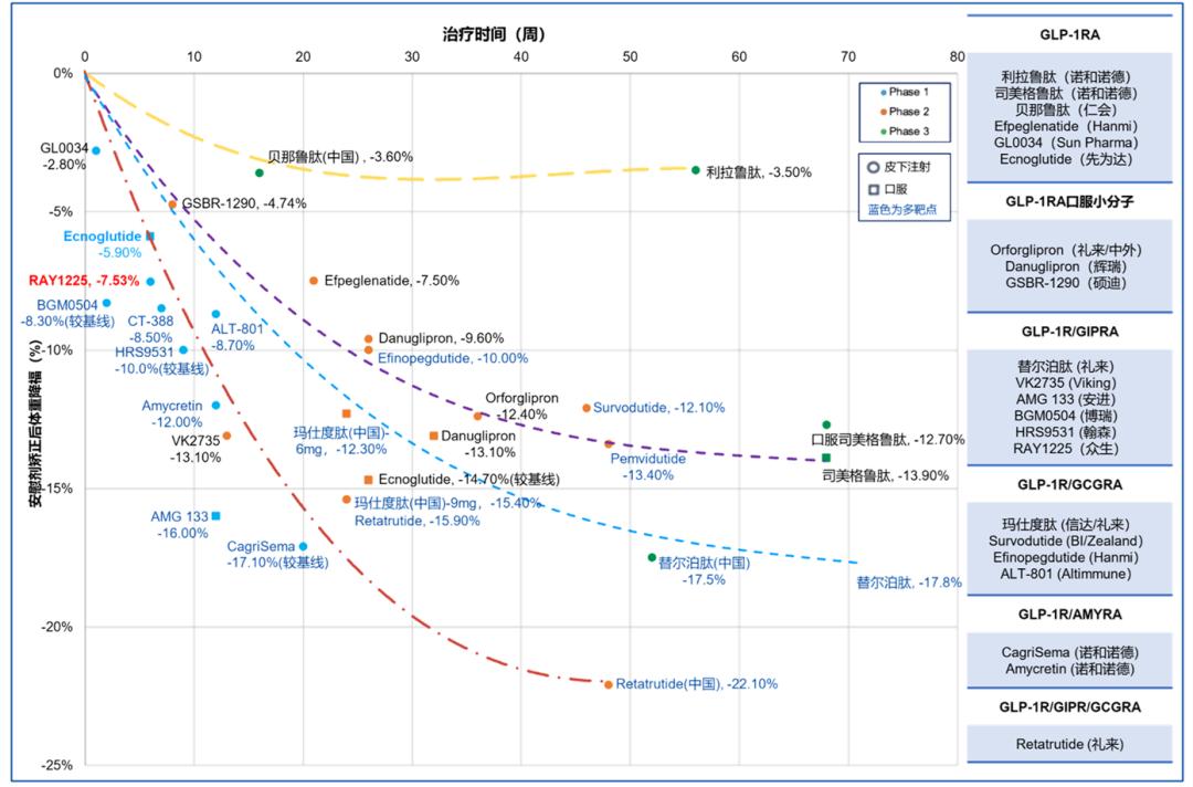 GLP-1药物减重数据汇总(非头对头) 来源:华创新药