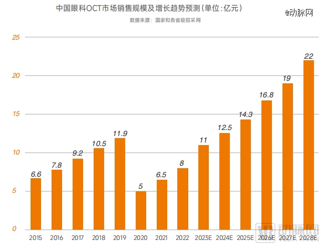 得益于国内眼科OCT产品需求的快速增长,眼科OCT市场销售规模不断扩容。据《2023中高端眼科设备行业白皮书》调研显示,我国眼科OCT市场销售规模从2015年的6.6亿元已增至2023年的11亿元,接近翻一番。