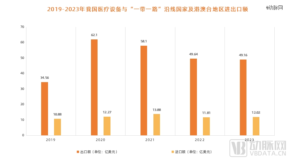 图1.2019-2023年我国医疗设备与“一带一路”沿线国家及港澳台地区进出口额