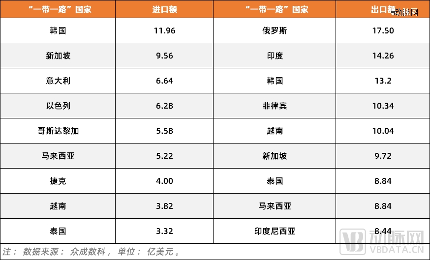 图2.2023年我国与“一带一路”沿线主要国家医疗器械进出口情况