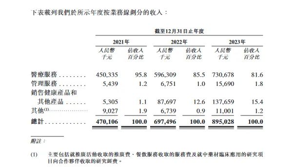 同仁堂医养的收入主要来自提供医疗服务、提供管理服务及销售健康产品和其他产品,报告期(2021年至2023年)各期收入分别为4.70亿元、6.97亿元和8.95亿元,同期,净利润分别为-679.30万元、-1466.00万元和4459.00万元。