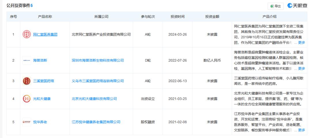 今年1月,同仁堂传承创新基金完成了对国医医联的A轮投资,后者专注于数字医疗成果转化。