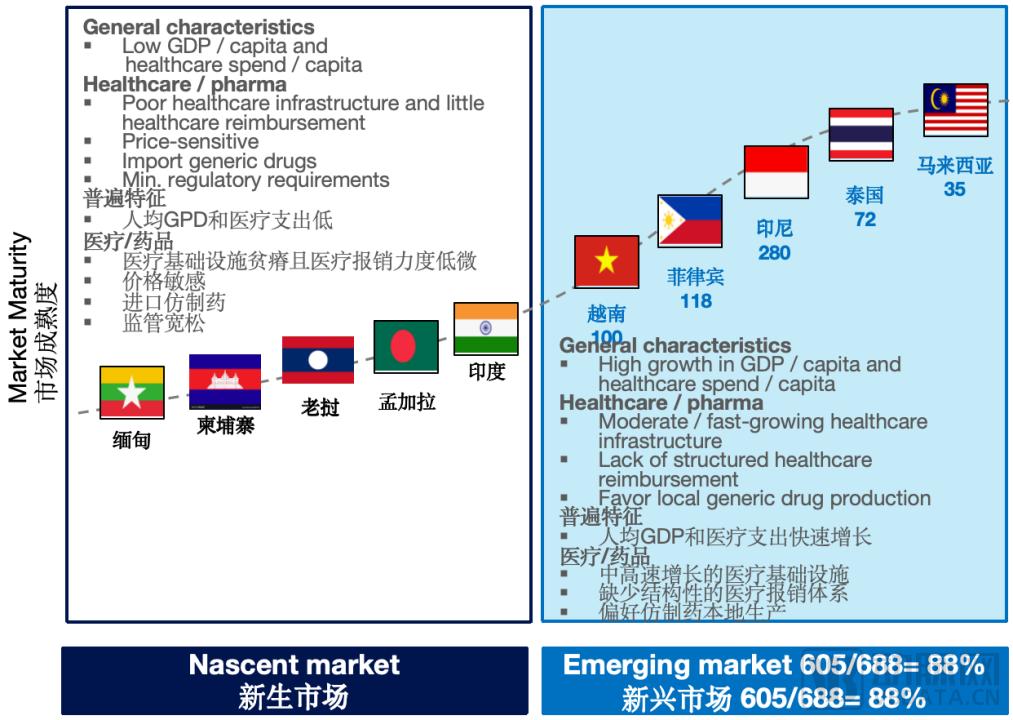 东南亚国家(不含新加坡)医药市场成熟度对比