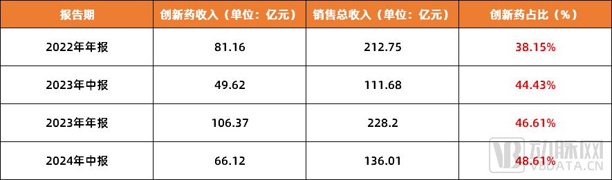 图4.2022-2024恒瑞创新药收入及其占比(数据来源:恒瑞年报)