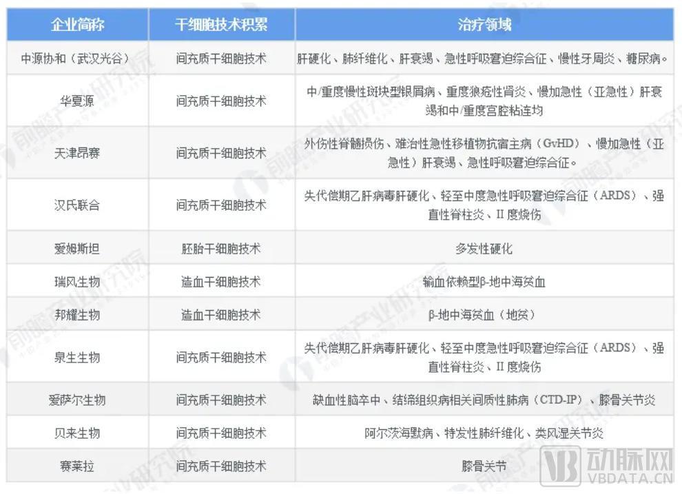 我国干细胞企业技术及应用领域布局 图片来源:前瞻产业研究院