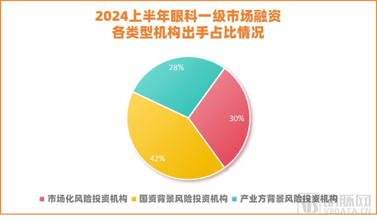 根据动脉橙数据库数据显示,2024年上半年,我国眼科领域的融资事件中,国资背景的风险投资机构占比约42%,市场化的机构占比约30%,以CVC为代表的产业方背景机构占比约28%(2023年占比约25%),后者持续提升。