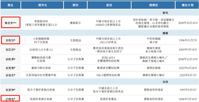 九源基因的大部分上市产品及在研产品均为生物类似药或小分子仿制药,已上市的产品组合一共有8款,包括于骨科、肿瘤及血液领域的一款药械组合、两款生物制品,以及五款化学药品。