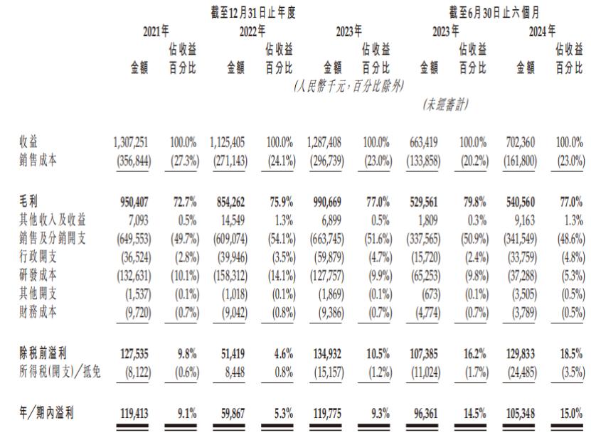 财务数据方面,2021年、2022年、2023年以及2024年1-6月(以下简称“报告期”),九源基因的营业收入分别达到13.07亿元、11.25亿元、12.87亿元及7亿元;同期,净利润分别为1.19亿元、5987万元、1.2亿元及1.05亿元。