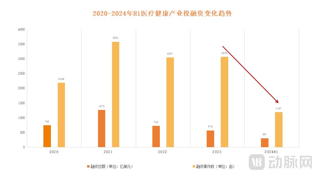 图1.2020-2024年H1医疗健康产业投融资变化趋势(数据来源:动脉橙)