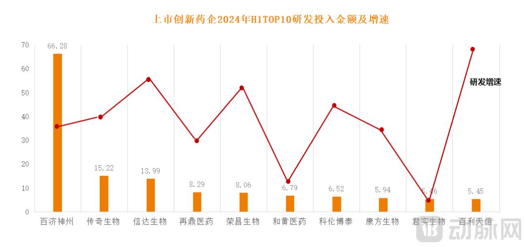 图3.上市创新药企2024年H1TOP10研发投入及增速(数据来源:公开资料)