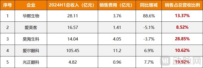 图5.部分消费医疗企业销售费用及占比(数据来源:公开资料)