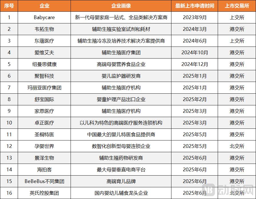 图1.正在冲刺上市的部分生育类企业(动脉网制图)