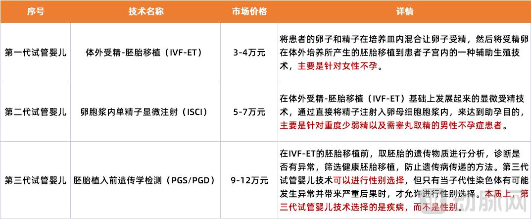图4.三代试管婴儿技术详情及市场定价(数据来源:沙利文,动脉网制图)