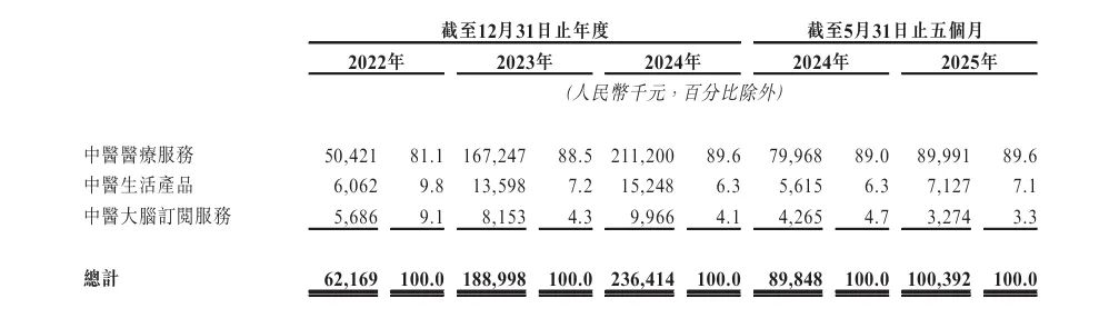 招股书显示,问止中医主营业务包括线上线下中医医疗服务、中医科普培训、中医AI订阅服务,以及养生轻食产品。