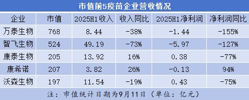 从全行业看,2025年上半年,中国疫苗上市公司整体的疫苗收入同比下降60%,净利润同比下降113%。