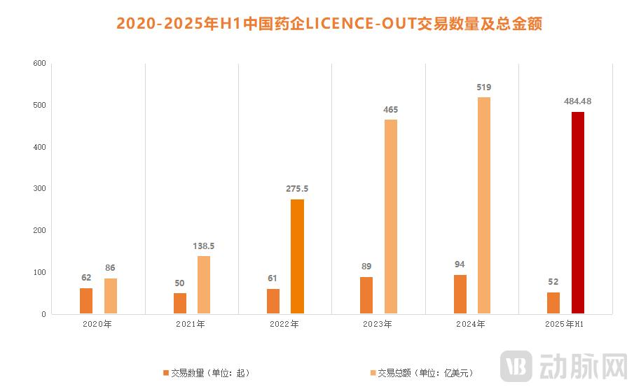 图1.2020-2025年H1中国药企licence-out交易数量及总金额(数据来源:医药魔方)