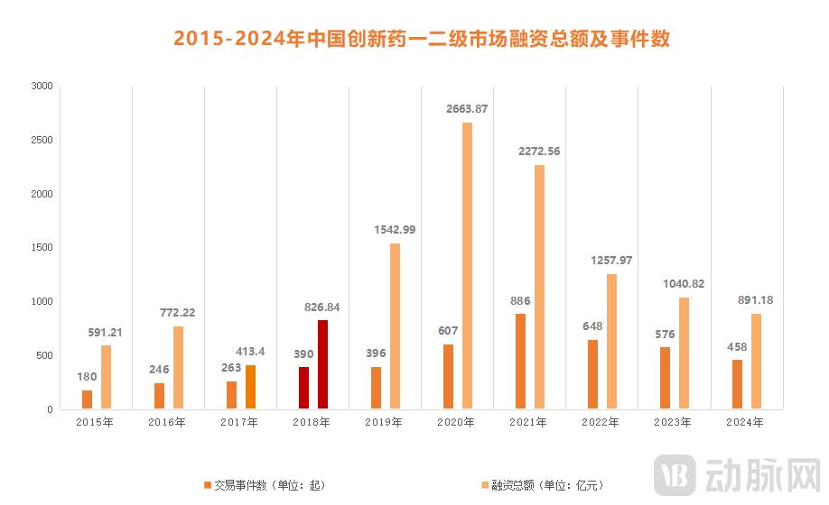 图2.2015-2024年中国创新药一二级市场融资总额及事件数(数据来源:医药魔方)