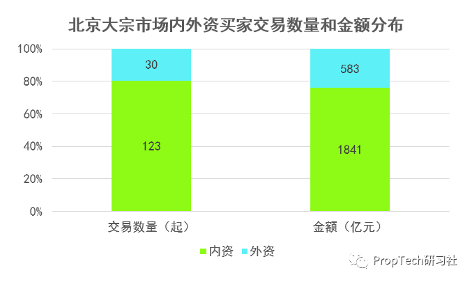 通过上述研究,PropTech研习社发现北京目前的大宗交易市场主要是由内资主导。