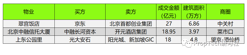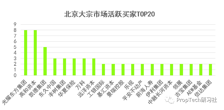 PropTech研习社发现,光耀东方、高和资本和凯德集团是北京大宗物业市场最为活跃的买家。