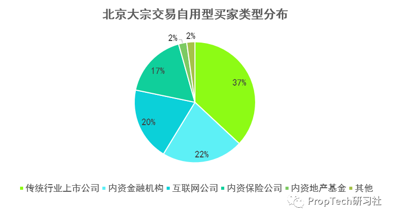 此外,PropTech研习社发现北京大宗市场的自用型交易大部分都来自内资买家。