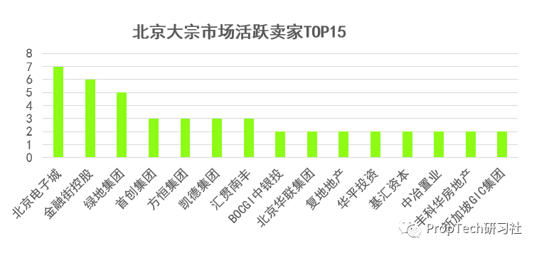 北京大宗市场前15位卖家基本上清一色的是内资开发商,北京电子城、金融街控股和绿地集团摘得前三,是北京大宗交易最主要的一手卖家。频繁倒手的外资卖家有凯德、汇贯南丰、华平投资、基汇资本等。