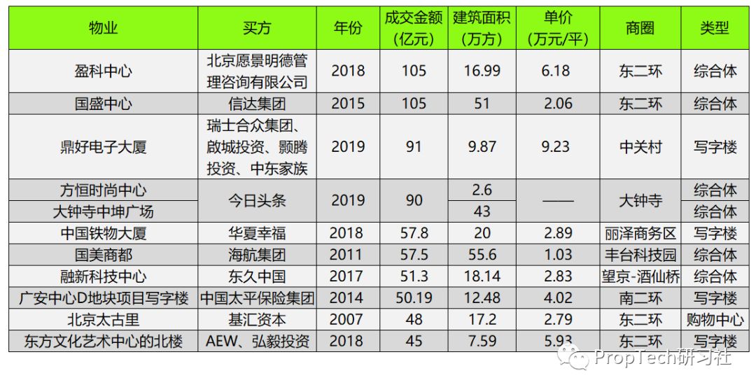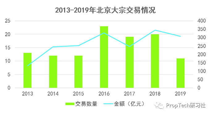 带着这些疑问,PropTech研习社查阅了五大代理行报告、上市公司公告以及媒体公开资料,梳理了从2005年至今的北京大宗交易数据。