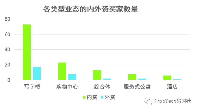 1、内资最爱买写字楼,外资收购业态更为多元化