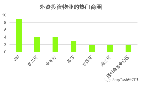 从内外资收购标的的商圈分布来看,外资对物业所处的商圈更为挑剔。外资参与的收购交易中,超过六成的收购标的均位于CBD、东二环和中关村、燕莎等北京老牌核心商圈,鲜少有项目位于上地、望京、通州等新兴商圈。