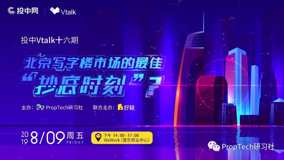 8月9日(周五下午),由投中网PropTech研习社与好租联合主办的Vtalk沙龙将在北京望京WeWork举行,届时我们将围绕“北京写字楼的最佳抄底时刻”展开讨论。