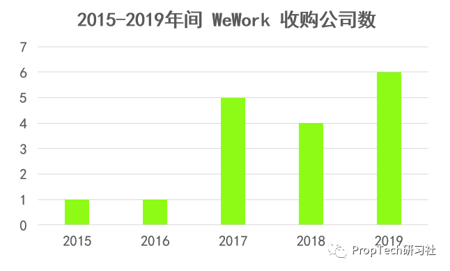 图:WeWork 收购数量(来源:Crunchbase)