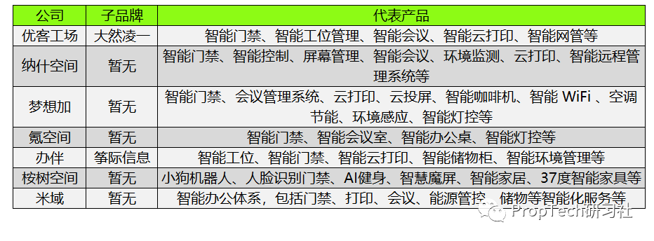 除了优客工场,其余的头部联办品牌如办伴、梦想加等大多数选择自主研发技术,头部联办企业在智慧办公领域的布局见下表: