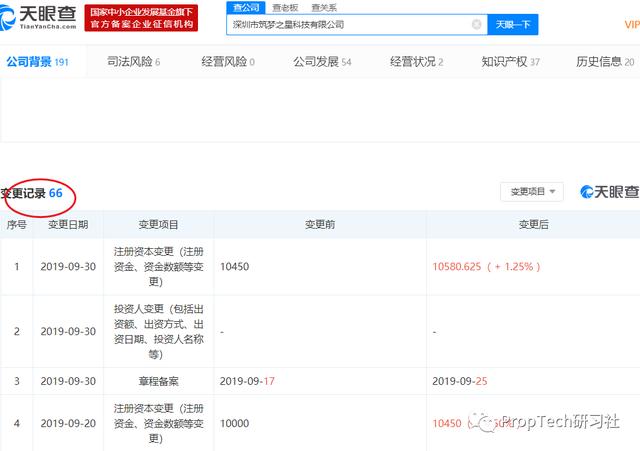 此外,PropTech研习社还发现,筑梦之星近期工商变更频繁,天眼查显示,2018年12月以来,变更记录高达44条。