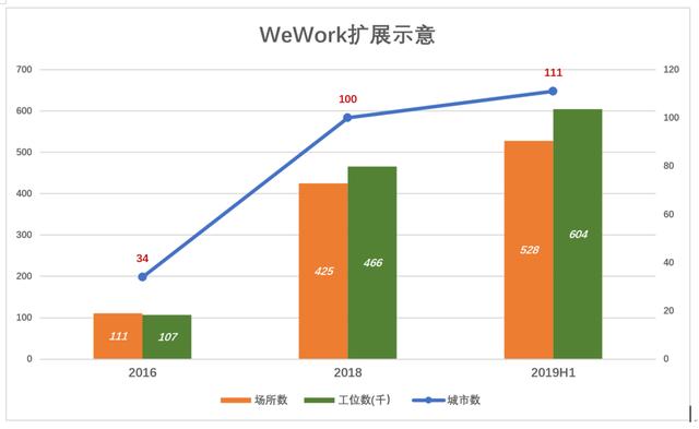 截至2019年6月末,WeWork在29个国家,111座城市运营528处办公场所,累计注册会员52.7万(Space-as-service会员模式)。