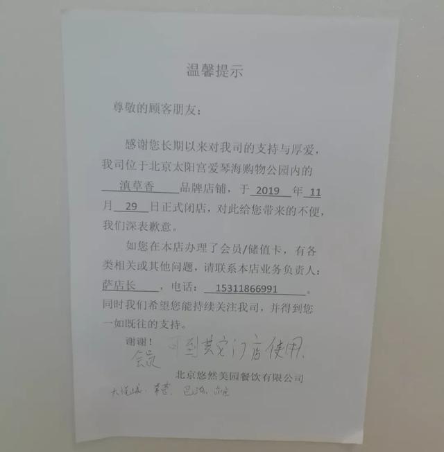 “滇草香”的关店通知