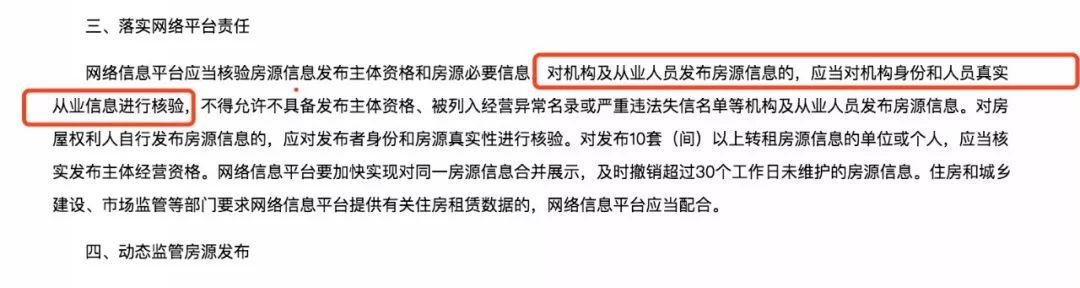《意见》规定,“对机构及从业人员发布房源信息的,应当对机构身份和人员真实从业信息进行核验。”