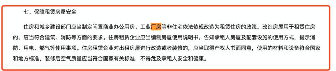 《意见》指出,“住房和城乡建设部门应当制定闲置商业办公用房、工业厂房等非住宅依法依规改造为租赁住房的政策。改造房屋用于租赁住房的,应当符合建筑、消防等方面的要求,使用的材料和设备符合国家和地方标准,装修后空气质量应当符合国家有关标准,不得危及承租人安全和健康。”