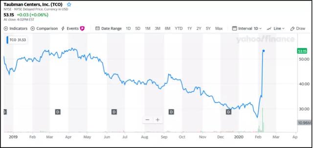 截至2月11日收盘,塔尔曼(Taubman Centers)股价上涨至53.15美元,市值为32.54亿美元,而西蒙地产近期的股价波动幅度不大。