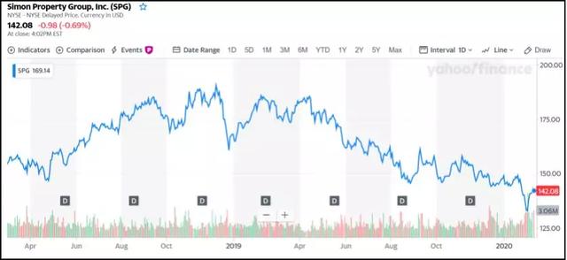 西蒙地产最近一年的股价走势