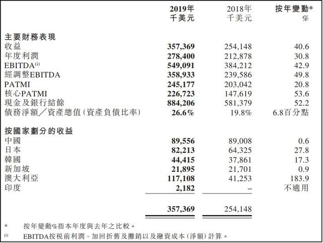 根据易商红木2019年财报:2019年,易商红木实现收入3.57亿美元,较2018年增长 40.6%;税息折旧及摊销前利润(EBITDA)5.49亿美元,较2018年增长42.9%;年度利润2.78亿美元,较2018年增长30.8%;税后归属股东净利润(PATMI)2.45亿美元,较2018年增长20.8%。