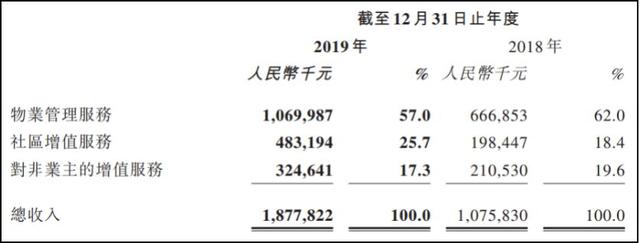 2019年,社区增值服务收入达约4.83亿元,较2018年同期大幅增长143.5%。社区增值服务的收入有所增加,主要是由于公司扩大提供增值服务的范围(例如社区维修及设施维护服务,以满足客户多样化需求),以及管理面积的增加致使客户群不断扩大。