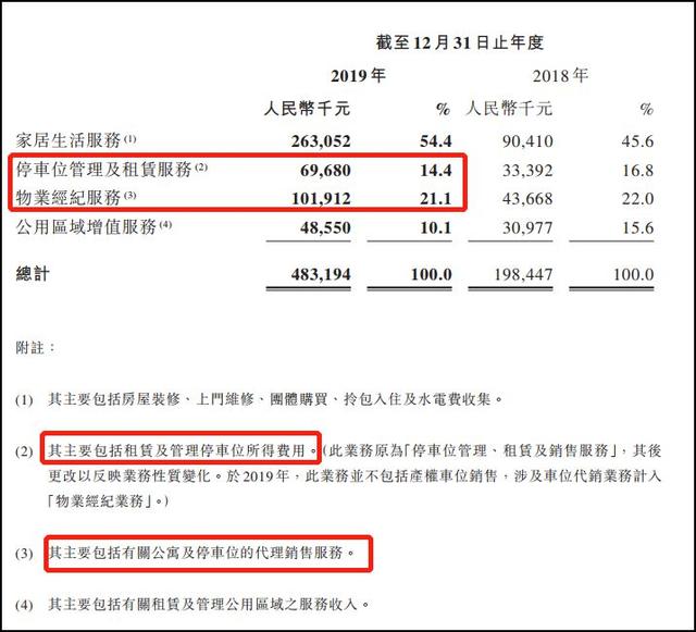 2019年对非业主的增值服务的收入为3.25亿元,同比增长54.2%,主要是由于旭辉集团和合作地产开发商开发的项目大量增加,对协销、交付前检验等服务的需求增长所致。