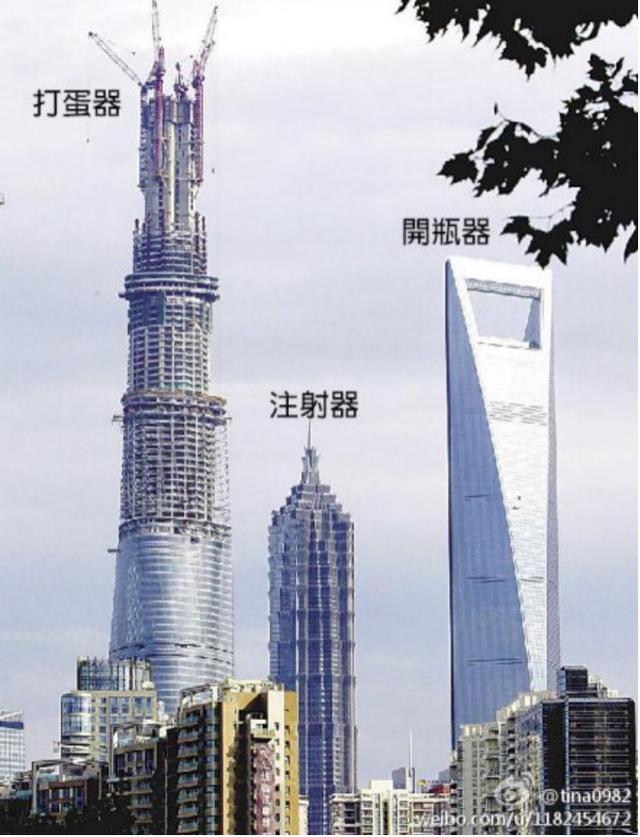 上海滩三高楼造型独特被戏称为“厨房三件套”